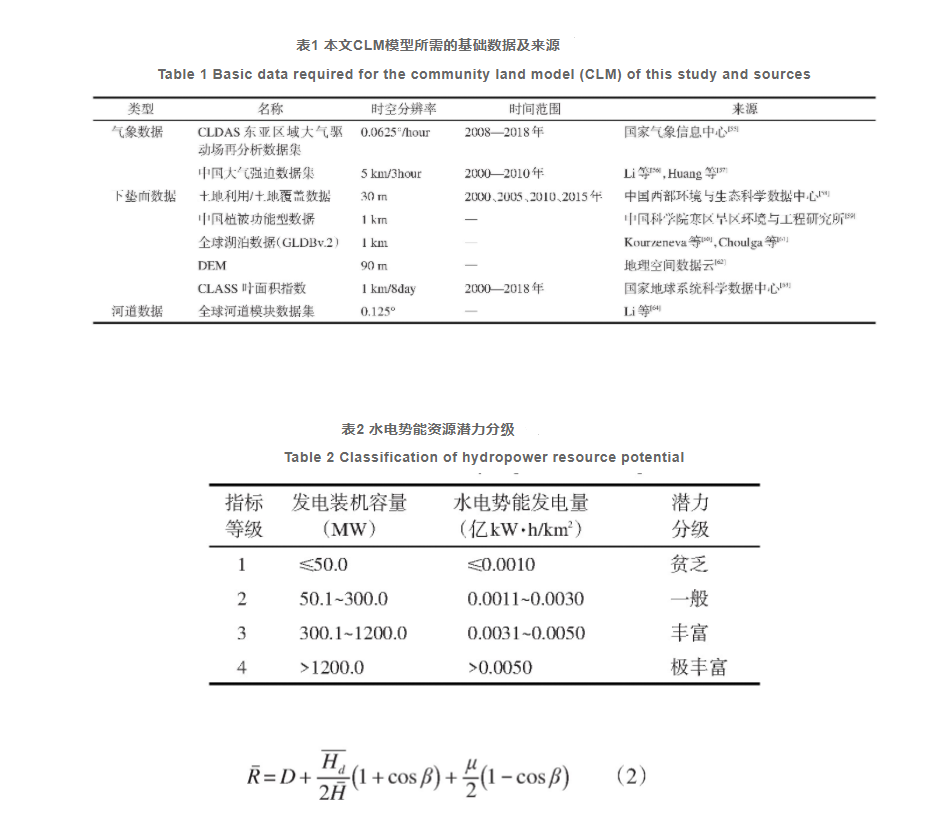 本文驅(qū)動(dòng)CLM模型所用數(shù)據(jù)集如表1所示,水電勢(shì)能潛力評(píng)估的空間分辨率為1 km,時(shí)間為2000—2018年。