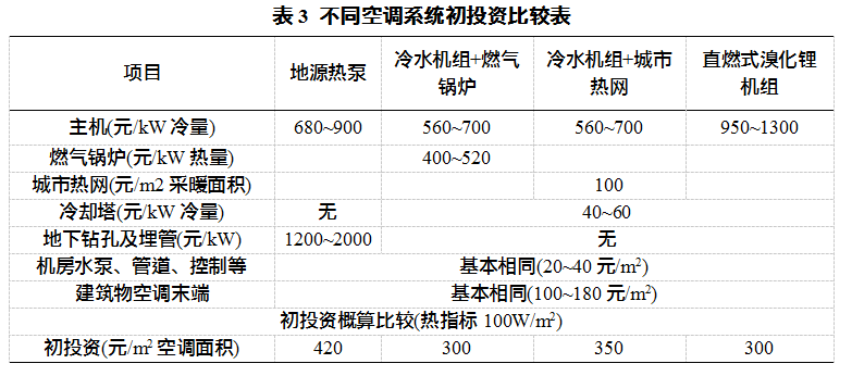 3)不同空調系統(tǒng)初投資費用對比
